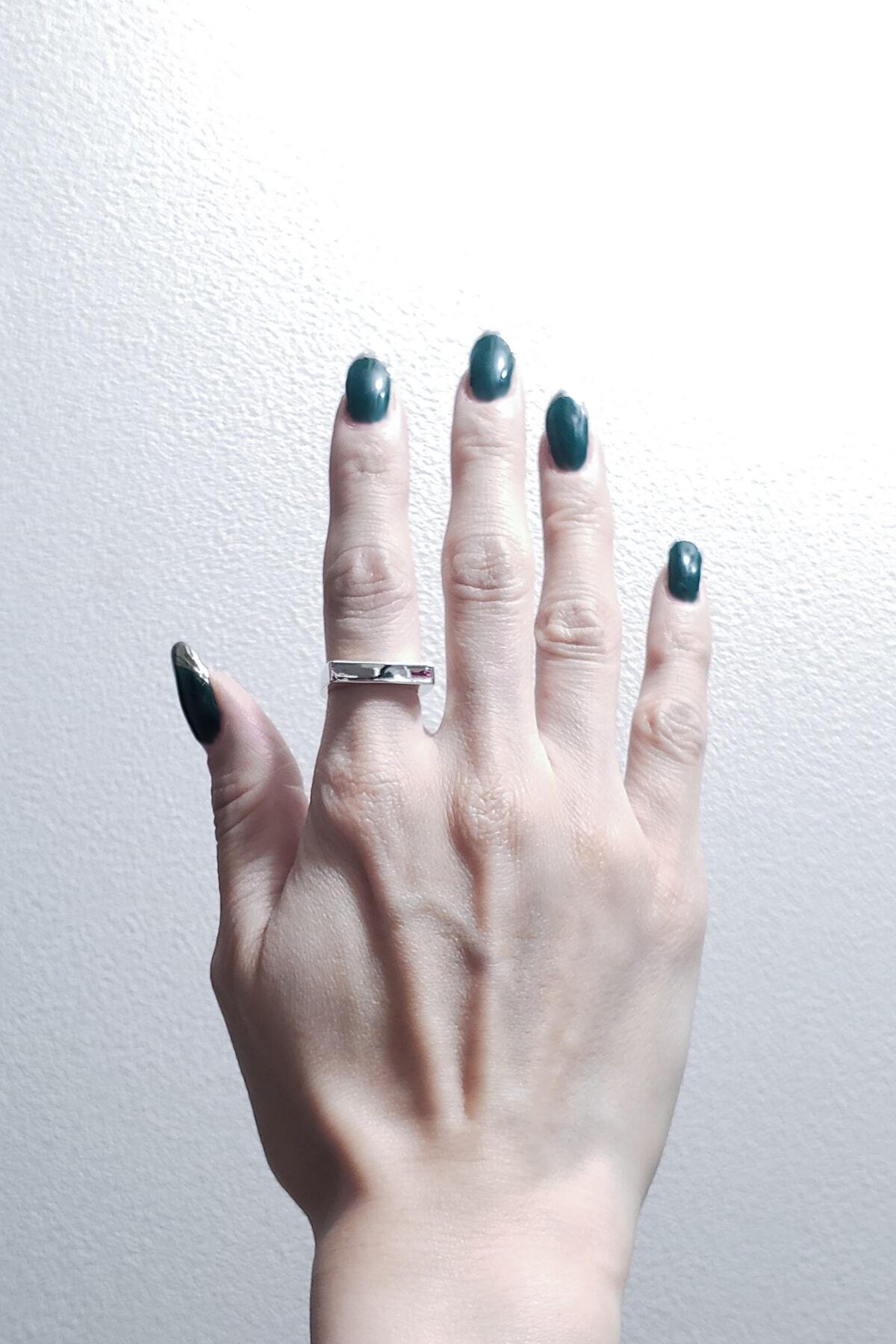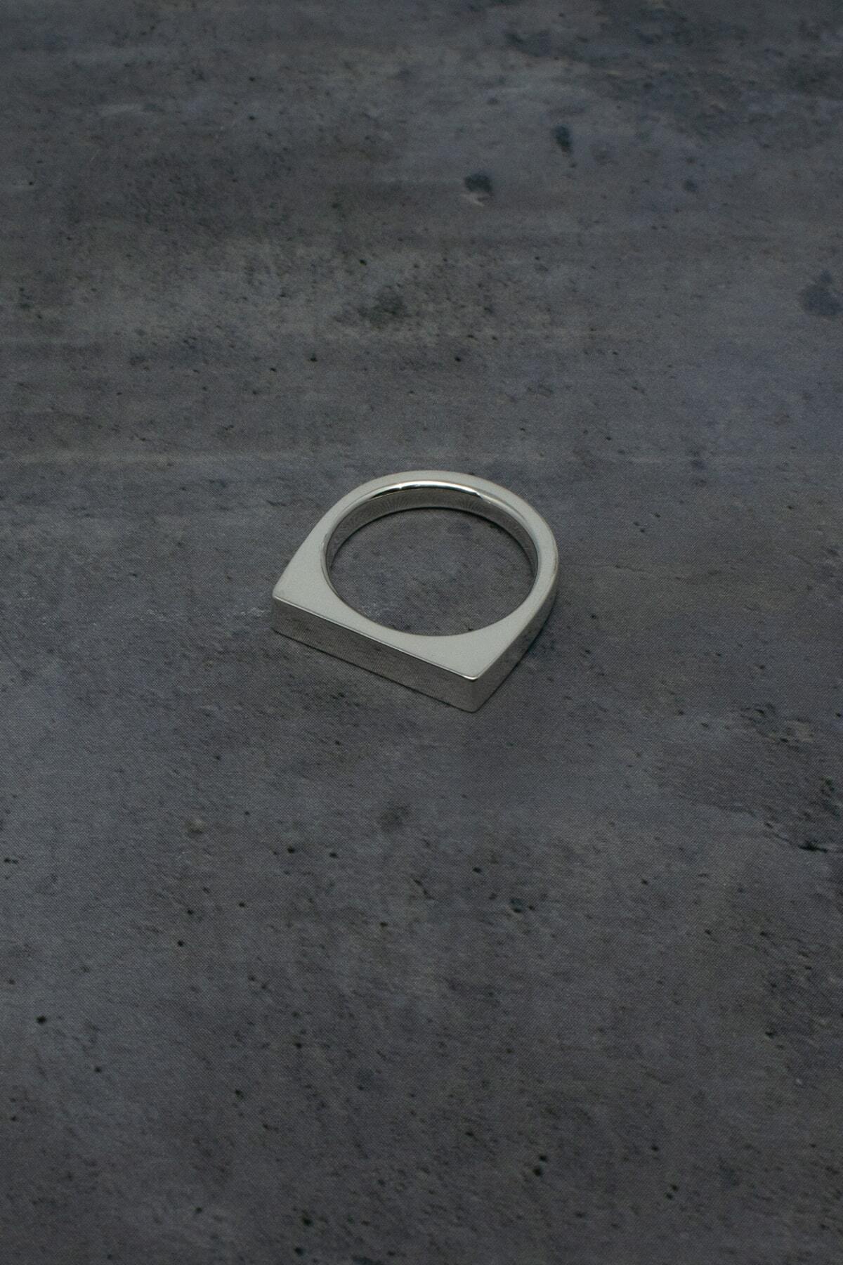 印台リングを薄くスライスしたような、無機質で研ぎ澄まされたシルエット。