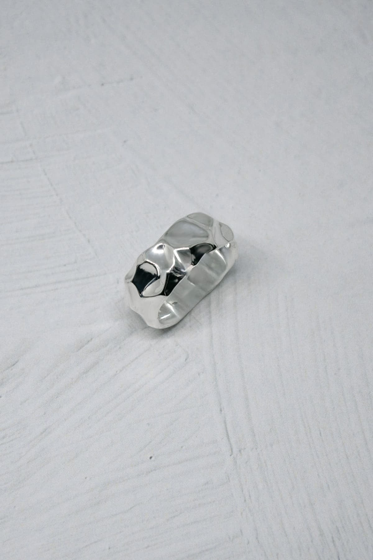 大きな槌目が力強い存在感を放つシルバーリング。
