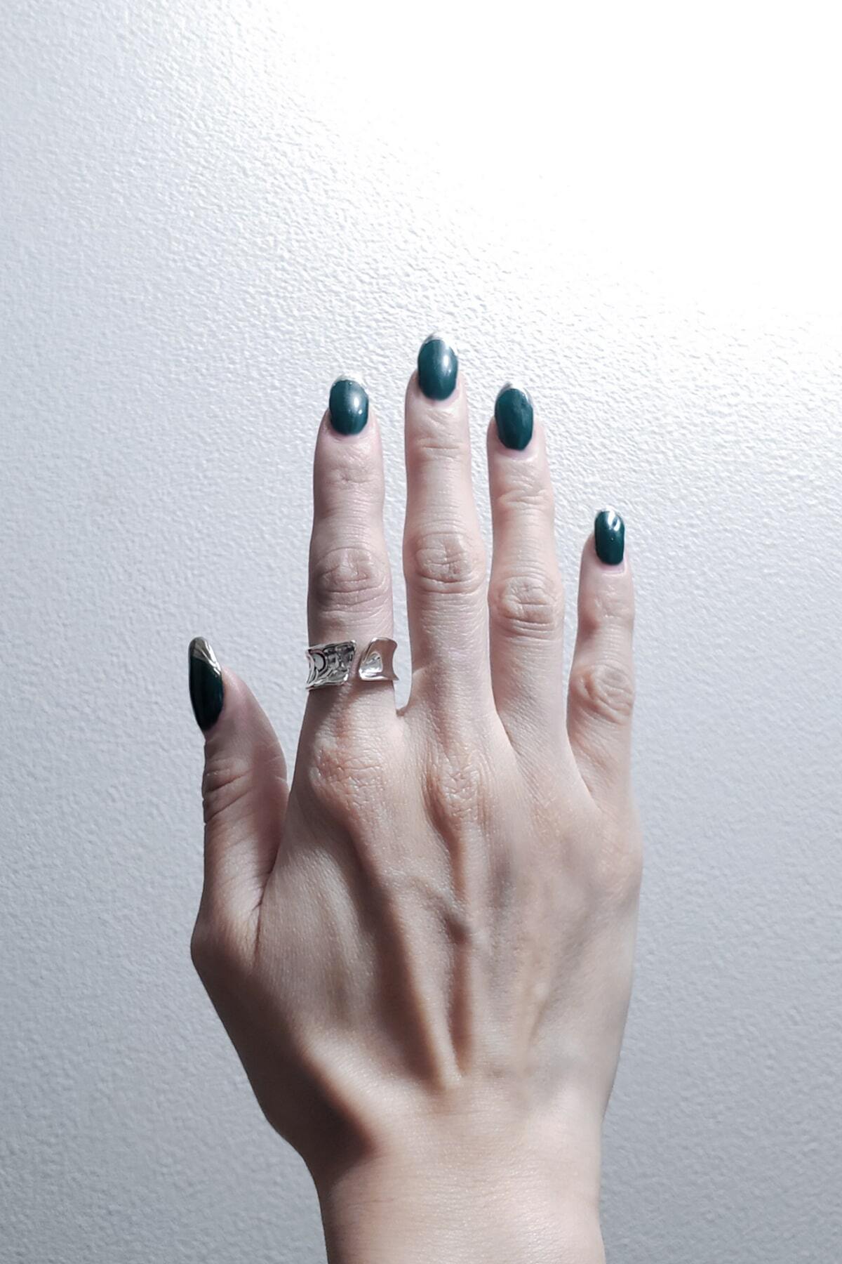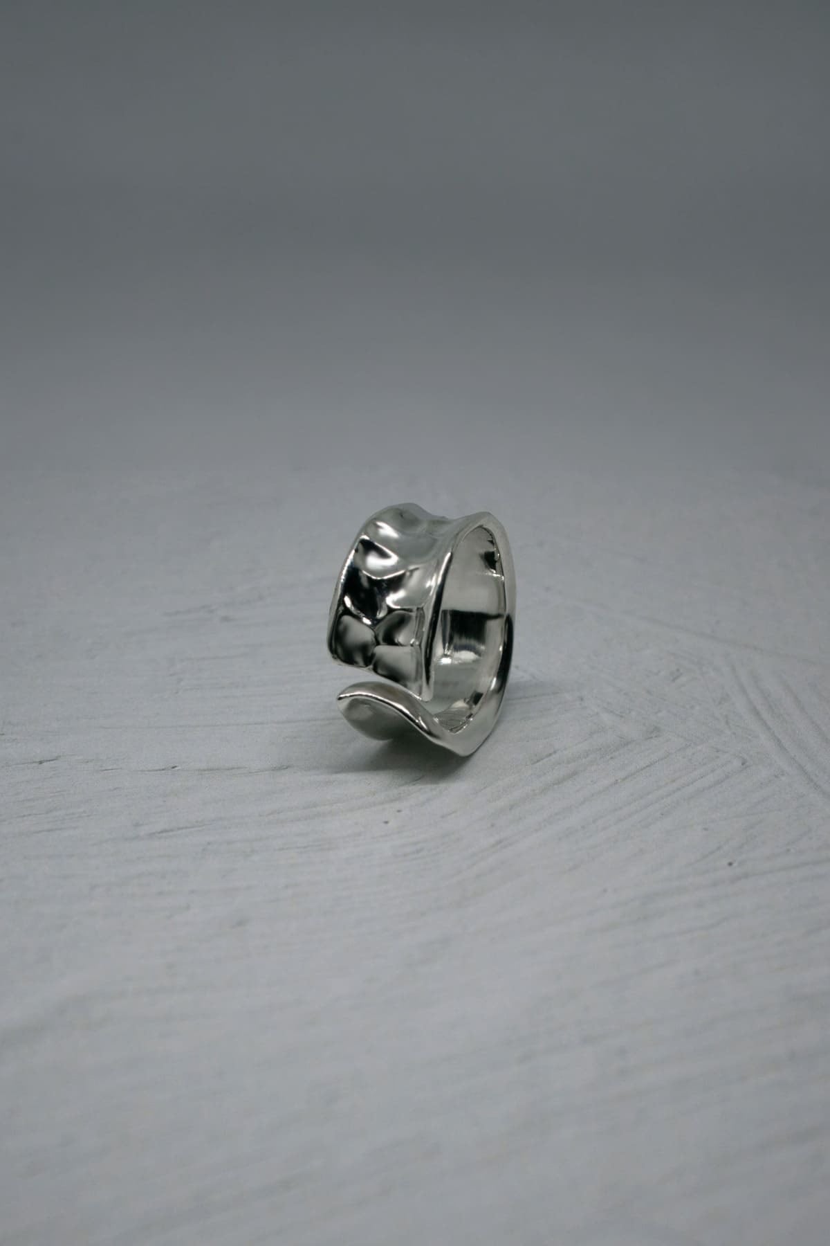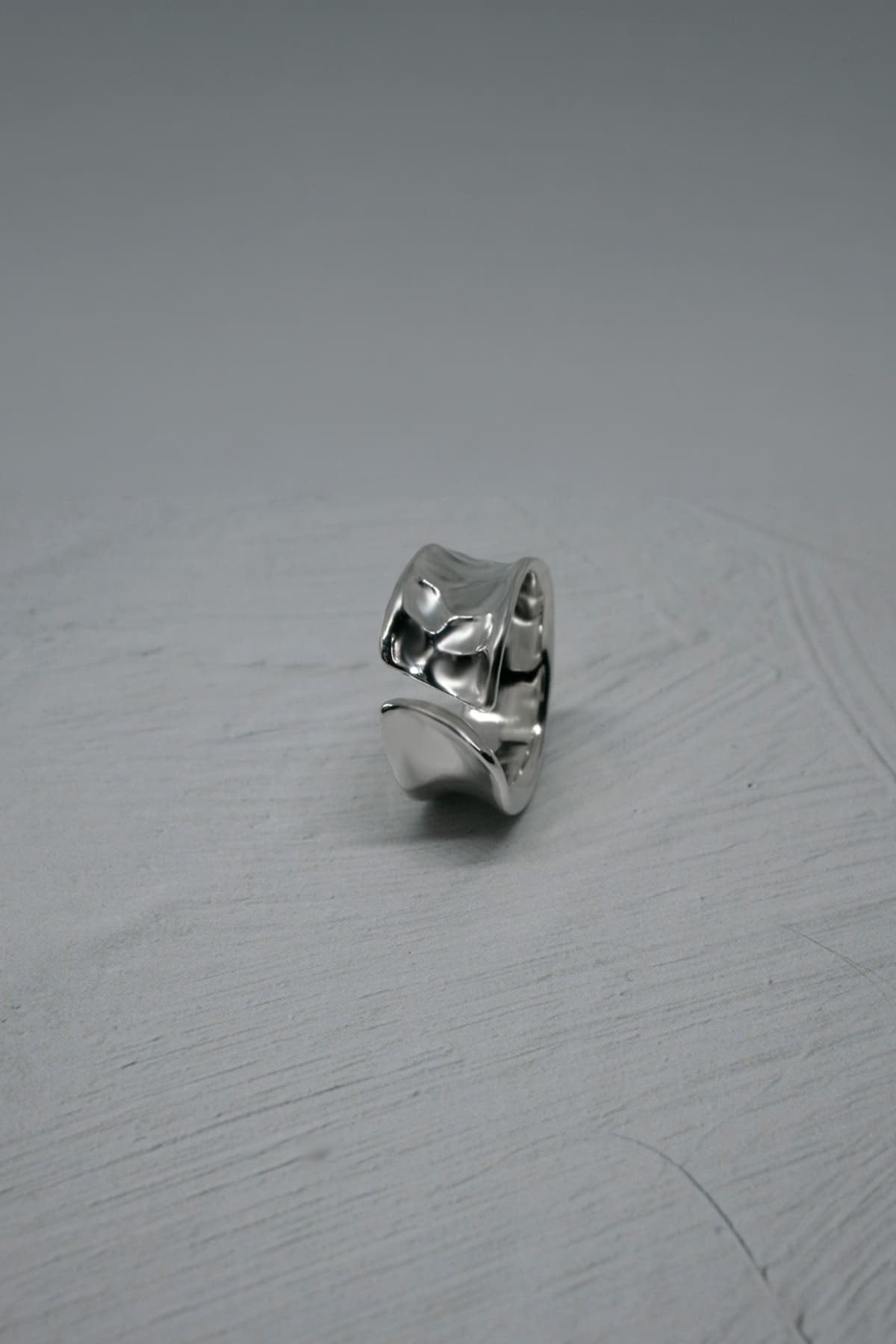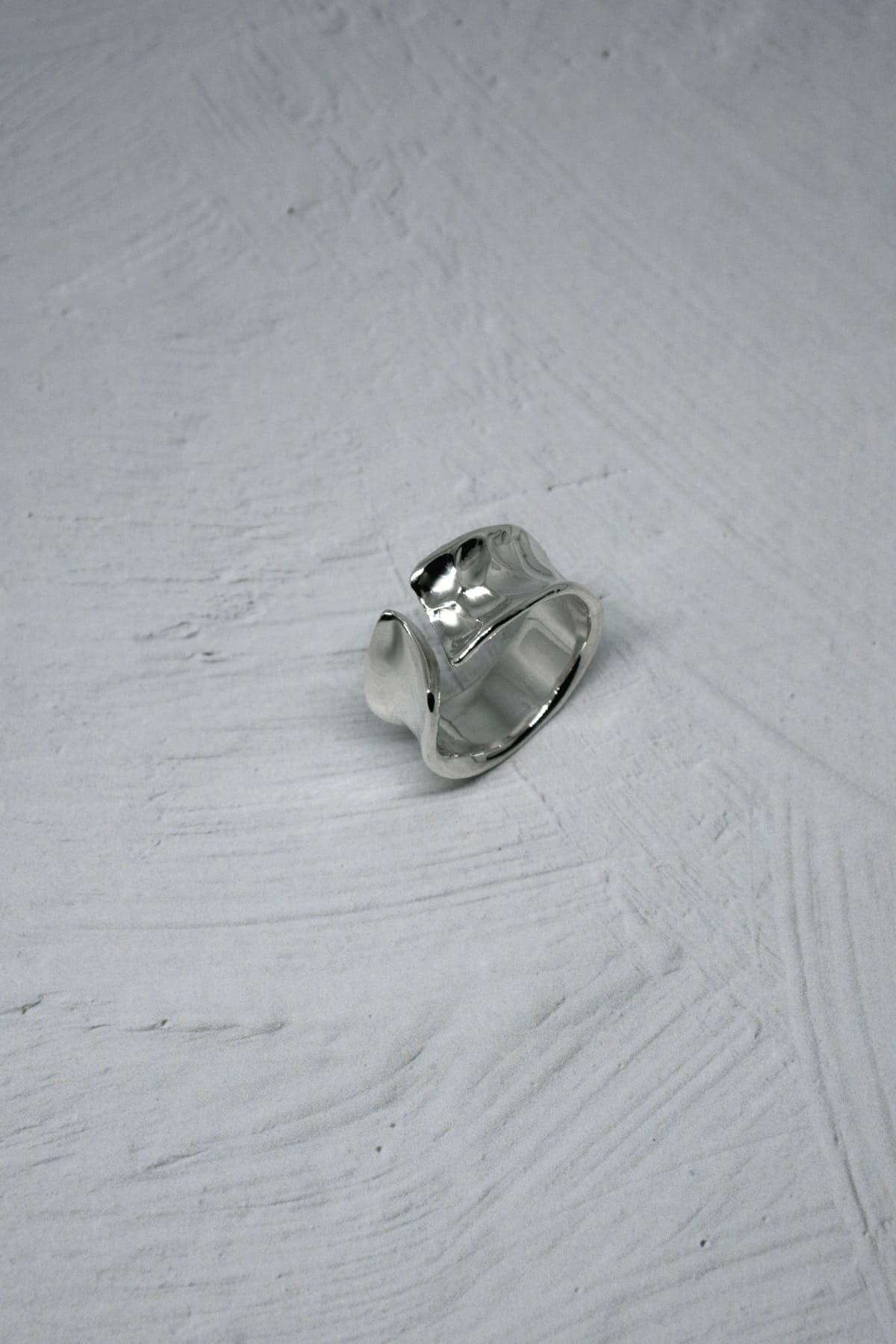 鏡面と槌目、二つの表情を宿したコントラストなリング。