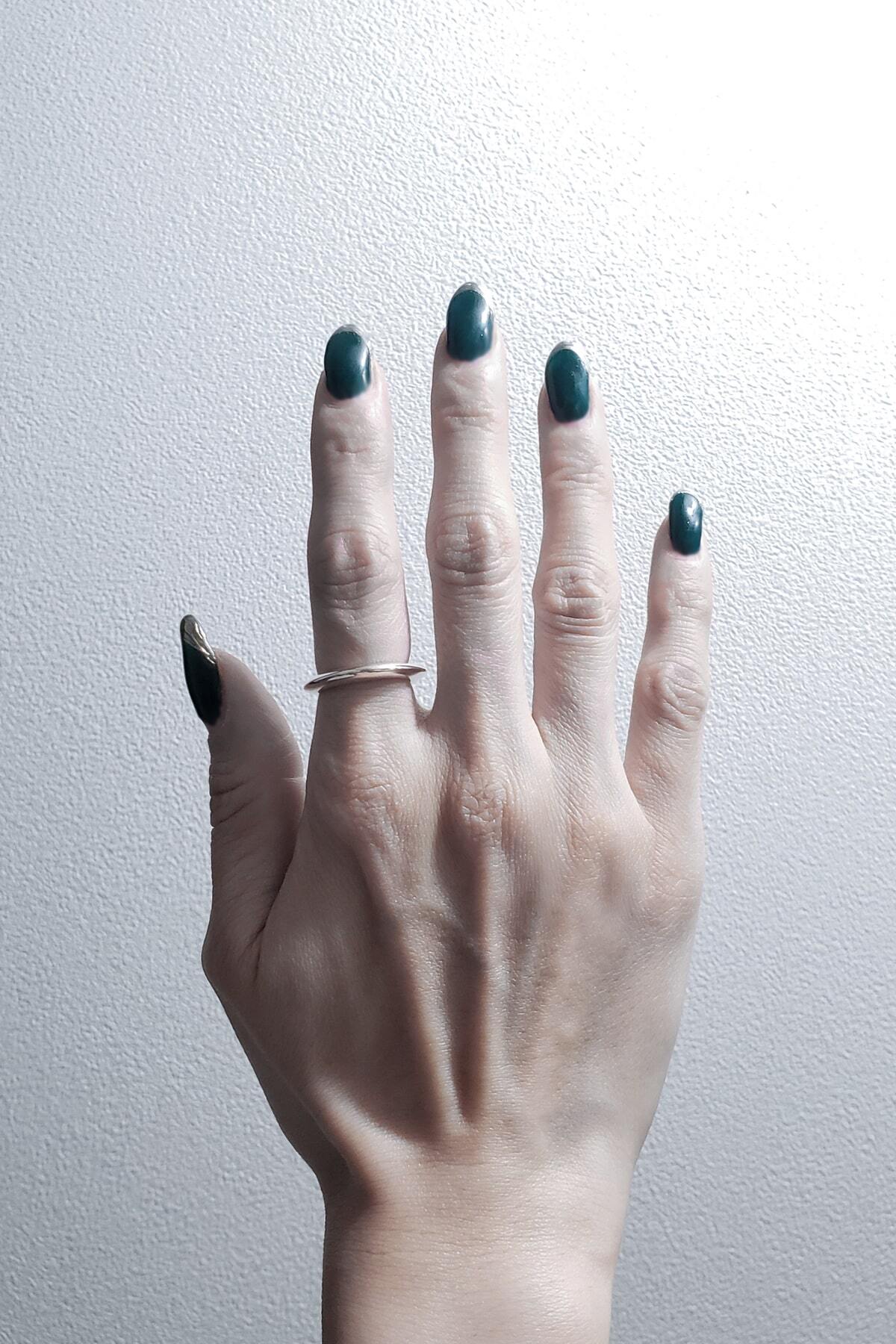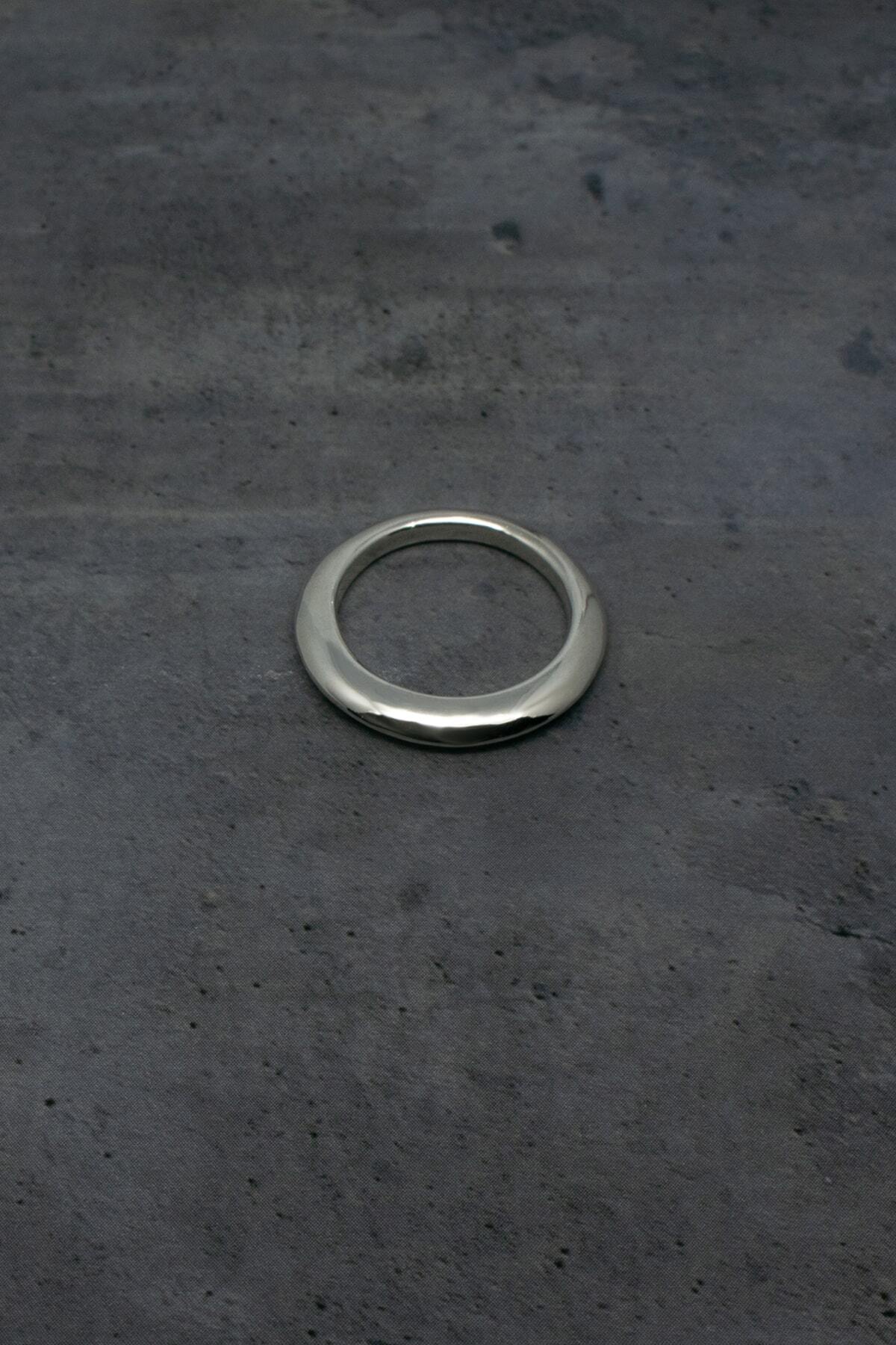 無機質な三角形の断面が目を引く、幅3mmの細身リング。